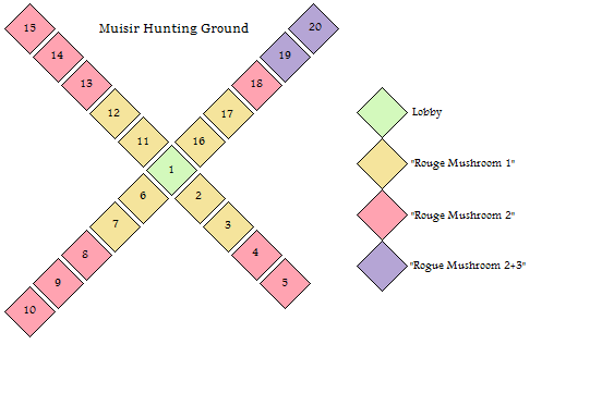 Muisir Training I | Slay the following Creatures: 5x "Rouge Mushroom 1" 5x "Rouge Mushroom 2" Then return and click "Did I pass Training I?" |
